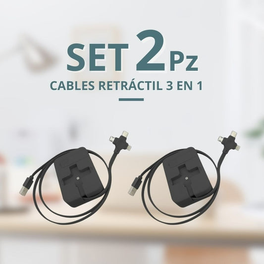 Cable USB Retráctil | 3 en 1 | 2 Piezas | Carga Múltiple
